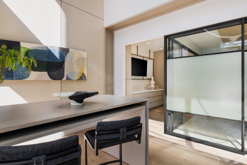 “The goal for the Moreland Properties office was to evoke the feeling of a luxury hotel or residence, matching the aesthetic of the properties they represent. Every interaction had to be seamless. The space is equally welcoming for a casual daytime coffee or an elegant evening soiree,” says Laura Britt, founding principal, Britt Design Group.