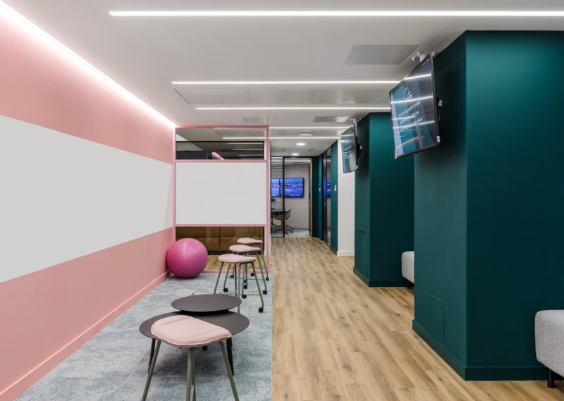 “Trainline originally occupied two floors within their building before taking an additional floor to help support their shift to a more agile workspace. The existing office layout wasn’t working for their people so our design team set out to improve the space with a Cat A and Cat B fit out of the new floor that would use the space to its full potential.