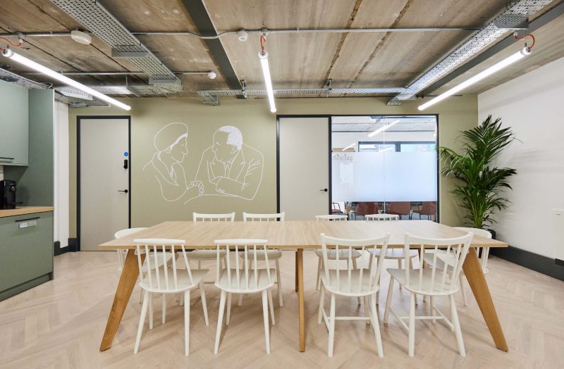 “As the charity grew, it needed more than the existing satellite office in London, as they were looking to create a central hub for both staff and their network. The new 6,000 sq ft Shoreditch workspace spans two floors, and provides the perfect base for the charity’s team and the wide range of people and projects it supports. After an introduction from building consultants Collins McKay, workplace design and build consultants Peldon Rose was chosen to realise The Rank Foundation’s vision of an inclusive home that lives and breathes what its founder stood for.