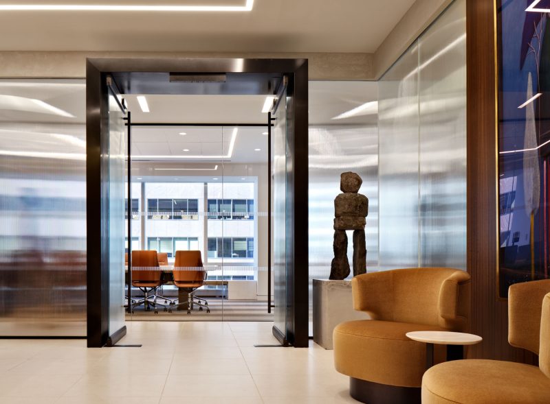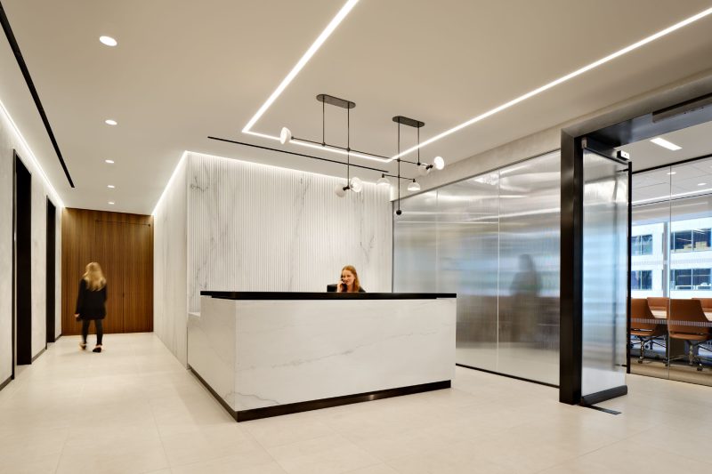 “When a longstanding client came to us to refresh their office during the pandemic, the transformation had to be targeted yet impactful. Spectorgroup’s design approach was to focus on materiality and details. The result was a complete transformation of the office from its original stark design to a rich environment that showcases the evolution and reputation of the firm. The new reception provides guests and employees with a renewed sense of arrival.