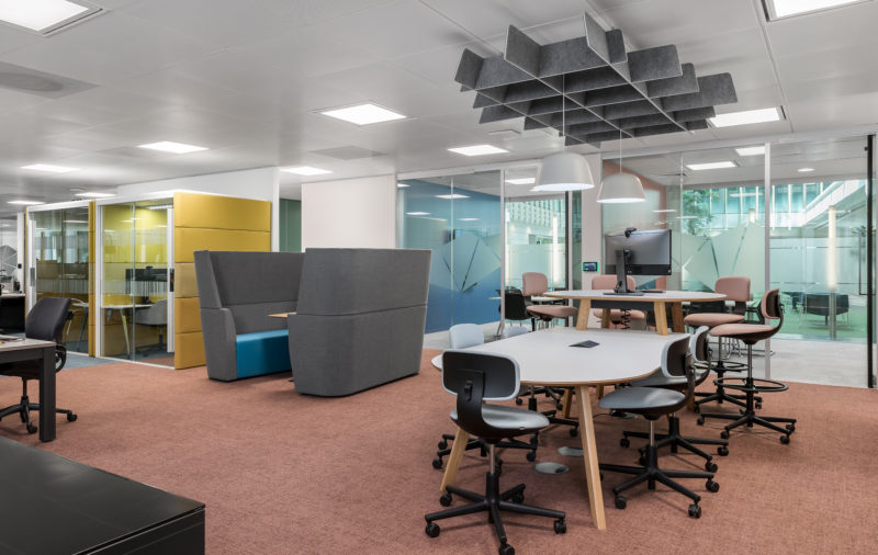 The new office furniture was key to the changing the way our client worked. Our furniture team developed a clever solution that could provide ample meeting space while maintaining the open environment, with soft divides breaking up the various types of workspace to give staff the choice of where and how they work. The combination of work pods, one-to-one meeting rooms, open or closed phone booths, and a collaborative bench area contribute to a cohesive and connected workplace, and are ultimately helping our client to break down the barrier between front-of-house banking and banking support.