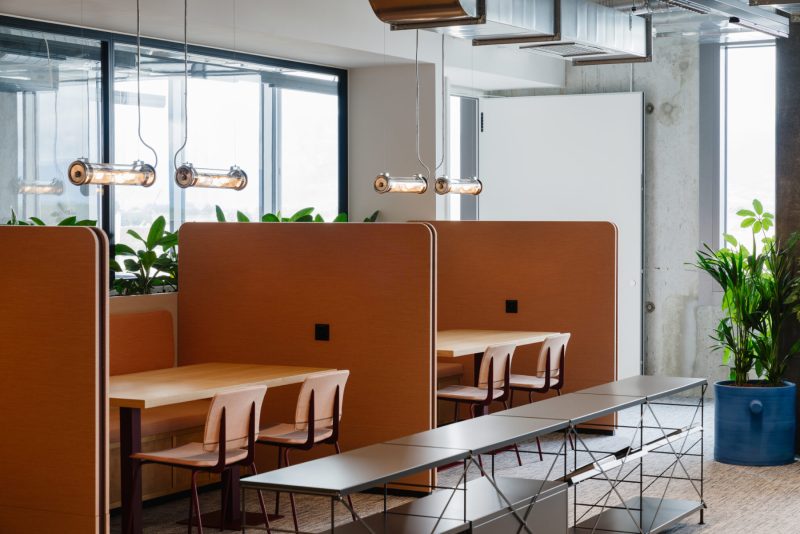 Rather than attempting to please just one specific generation, the new offices needed to suit all age groups and remain suitable over time. Studying the industrial environment of the area and its interaction with the surrounding nature became the creative thread for the choice of colours, materials and furniture. The workspace was conceived as a place for holding various types of meetings based on the number of people and need for privacy, creating tailor-made spaces for all needs and situations.”