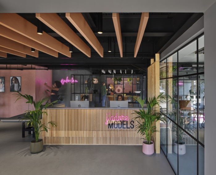 Workshop Design Studio has completed the new Manchester HQ for J’adore Models – a 10-year-old, Manchester-based agency, with a 20-strong internal team and over 250 models on their books. The agency’s strong commitment to boundary-pushing diverse and inclusive representation, together with its team’s eye for spotting interesting models and seeing their potential, has given them a unique space in the marketplace and an impressive global client list, from the catwalk to the high street. The company was set up by sisters Sam Fry and Jess Ludlam and describes itself as ‘a grassroots company from the heart of Manchester, offering skilled, hands-on management of global talent and a premium worldwide client base.’
