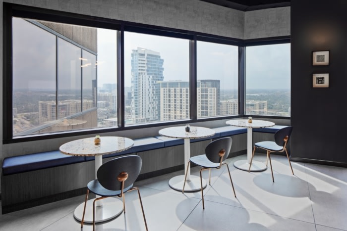 21 floors above an ever-bustling Galleria submarket in Houston, Texas stands Ventuno at 1800. A welcomed departure from the norm of workday past, Ventuno caters to bold companies who understand that the pause of a house-made brew in the morning might just be where innovation strikes, and that an impromptu lunch around the community table is a vehicle for team bonds that fuel united progress. Located on the penthouse level with 360º city views, enjoy the ride (or split walk) to the top where you will be welcomed by the 21-foot host bar, serving up automated espresso drinks and always chilled sparkling water 24/7.