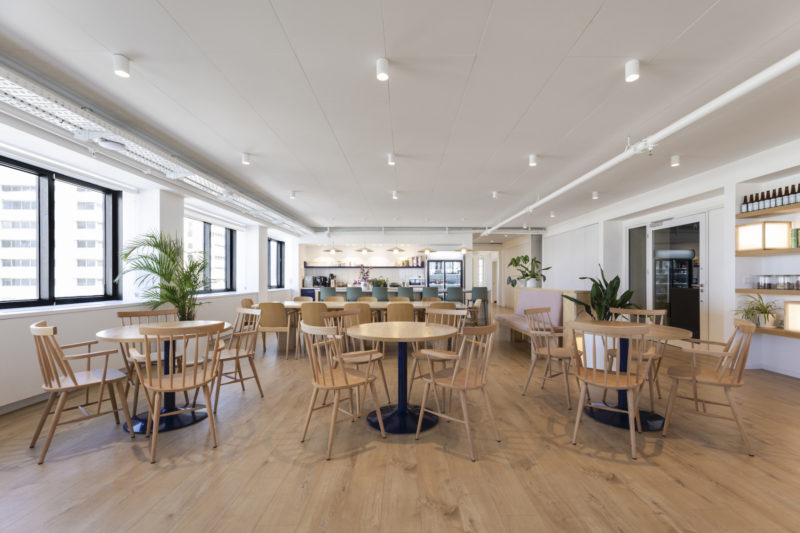 The design style of the office is light and clean while introducing a sense of warmth; Light Scandinavian wood was used for the floors and almost all furniture. Colours were used sparingly, the palette being inspired by the graphic characteristics of the company.