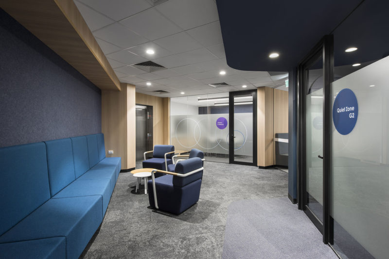 Quiet rooms, meeting rooms with integrated AV, study pods, lounge areas and moveable furniture allow flexible options for work on tasks away from fixed workstations in a comfortable environment that is designed to adapt as Cara continues to grow and evolve,” says DesignInc.