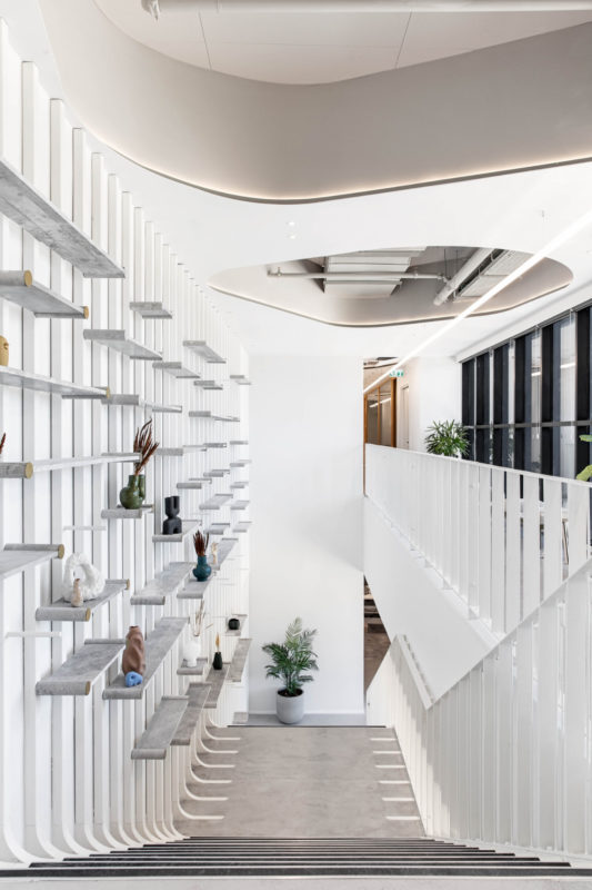 Accenting the entire project are work of art, 3d installations, text, interactive elements, and video art. This aspect of the space is based on the company’s brand, aiming to represent it in the daily life of the employees, inspire and bring them closer to company’s goals and ideals.”