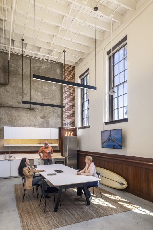 Sustainability and well-being were considered throughout, including the use of a minimal palette to limit the project’s carbon footprint, thoughtful consideration of the material specifications to limit toxins, integration of local planting to support biophilia, height adjustable desks in the studio, and energy-efficient lighting.