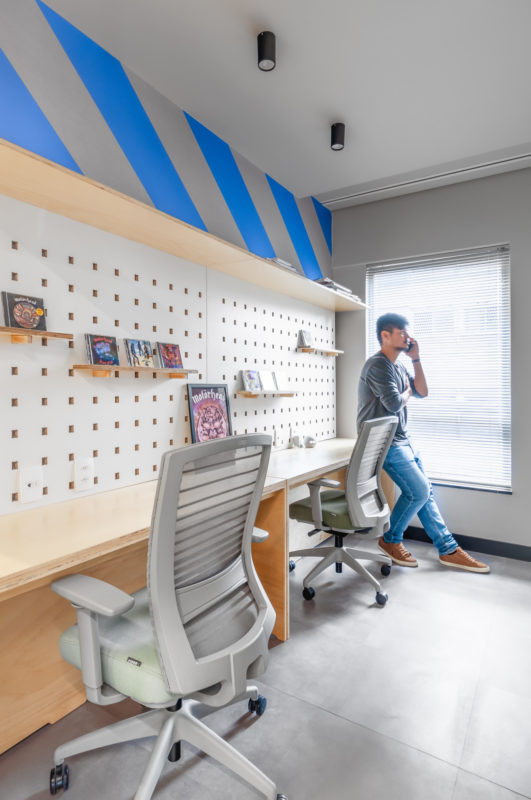 “Responsible for dealing with data protection cases, digital law and new technologies, they are connected with all these new relationships. Thus, the office’s identity could not be traditional or conventional. The use of bright colors, transparency and individual and common spaces activates the innovation and directs the development of a new concept of workspace.