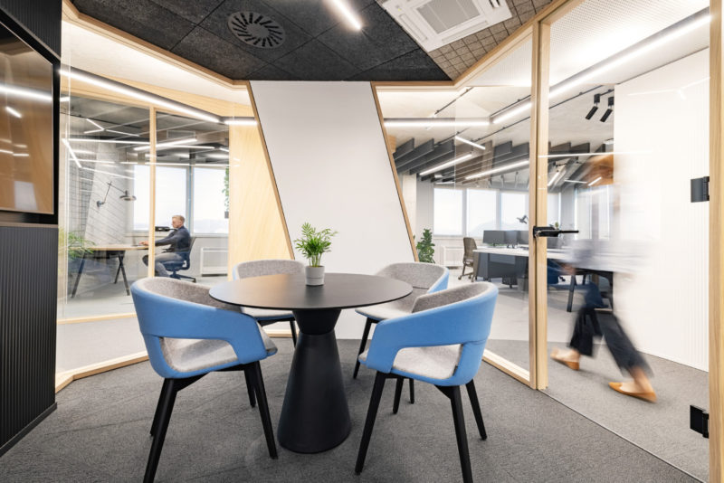 The project also changed as a result of the advent of the pandemic. The space requirement was reduced significantly, and certain spaces seen as less necessary while others became more important, such as social spaces with writable walls.Kragelj shifted quickly to meet these new requirements, not only halving the space but creating a design that reflects a rapidly changing work culture. Kragelj always builds responsiveness and agility into its designs, and this was essential when it came to delivering to a firm that was not only innovating and growing rapidly, but also adapting to the needs of a rapidly changing world.”