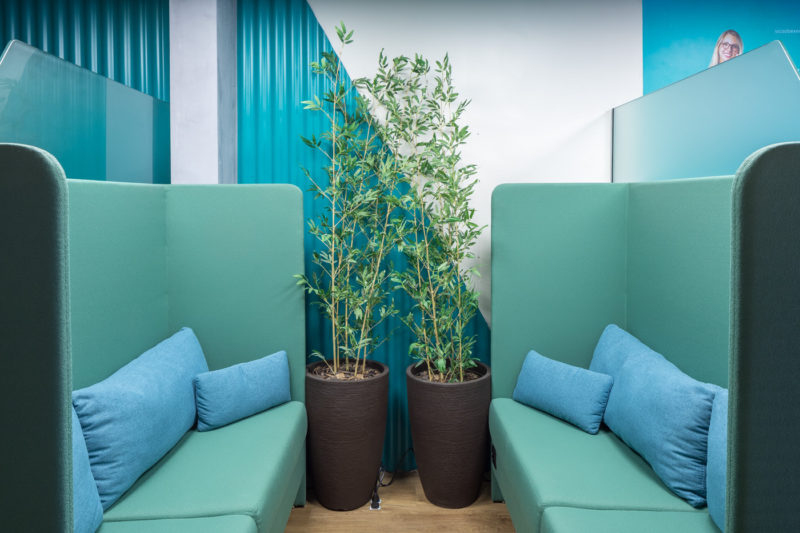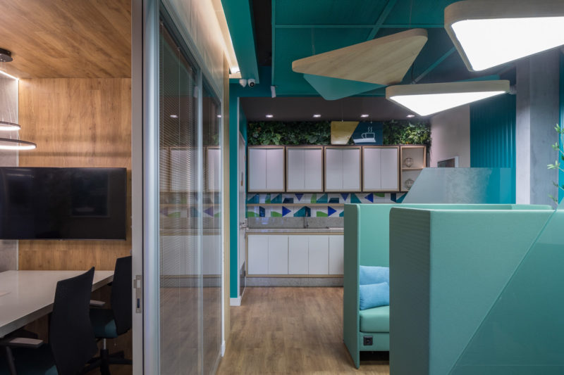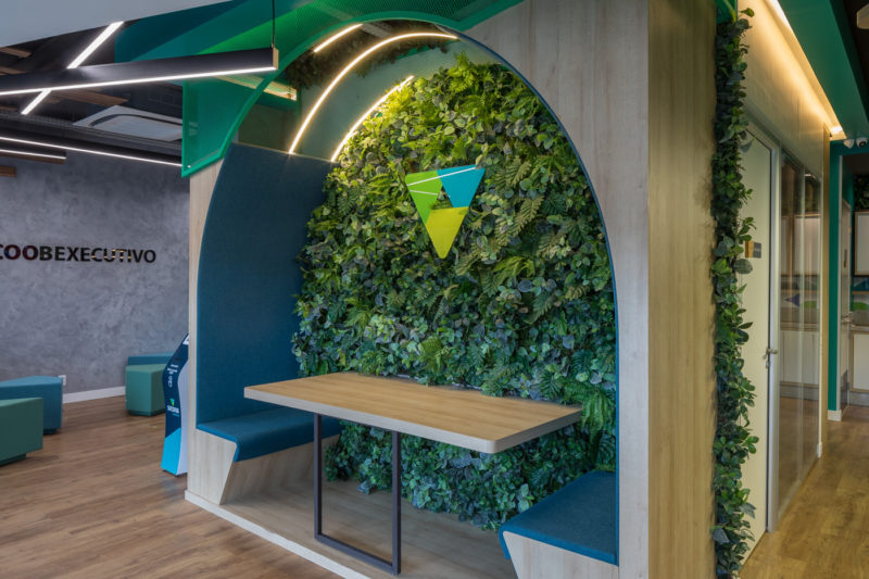 The wall coverings and meeting spaces were created so that the customer and staff can have more convenience and privacy, so that they feel completely belonging to the place, thus having a unique experience in their permanence in the company.”