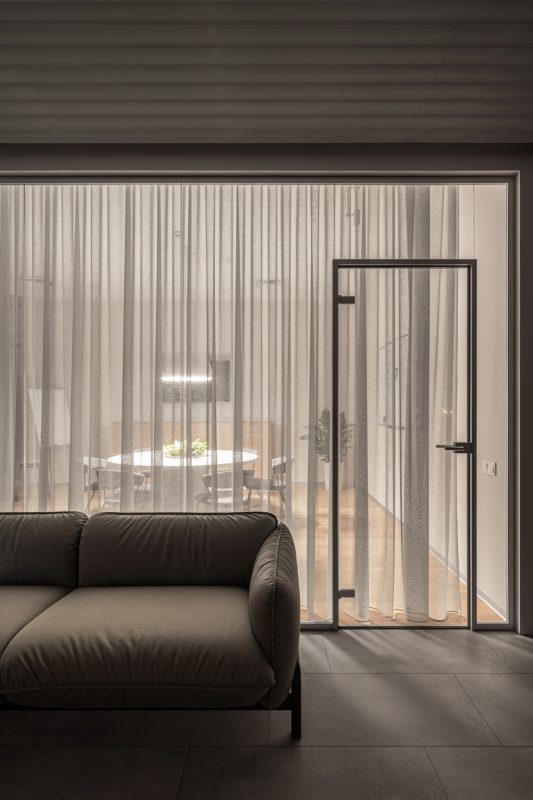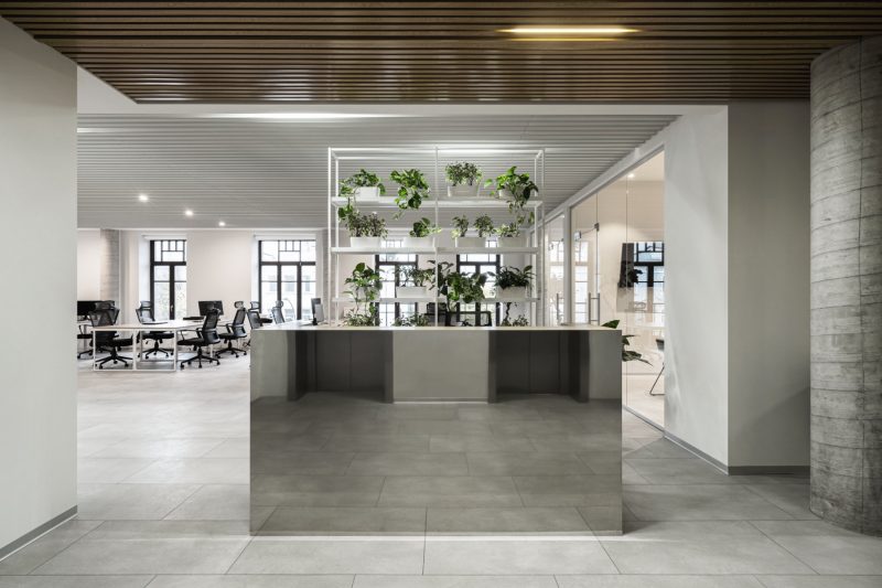 In a large cozy and homely conference room each detail – even the smell of a natural floor – makes you relax and agree to any conditions. Everything here is conducive to easy and pleasant negotiations. Visually the office space is divided by shelving and filled with lots of plants to create a sense of “green” walls.