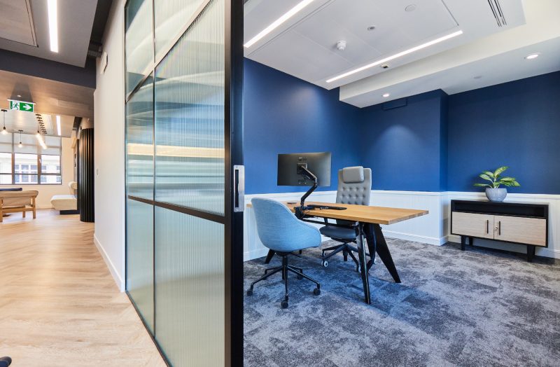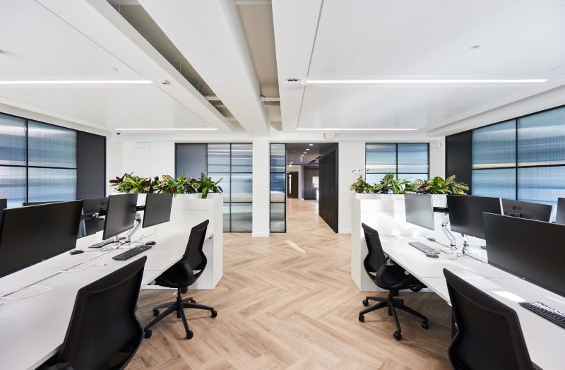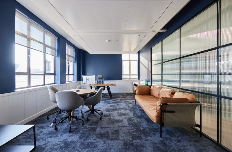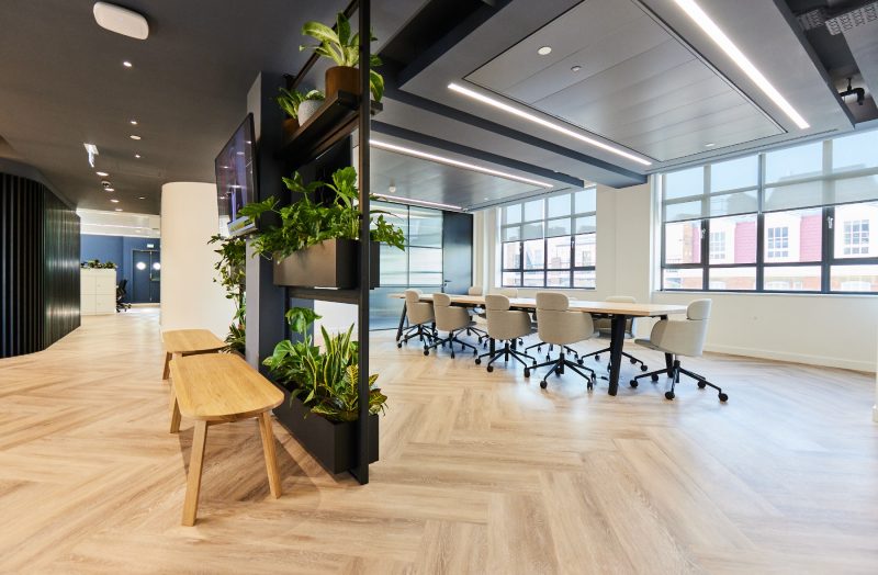 Either side of a number of spacious hot desks, sit two executive offices of truly transatlantic proportions, one key element of Transcard’s US office that couldn’t be left in Tennessee. Finished to the highest quality in natural materials – including joinery that curves round to the desks – creating a home from home for visiting executives demonstrate to UK and EMEA-based clients that they are getting the best Transcard has to offer.”