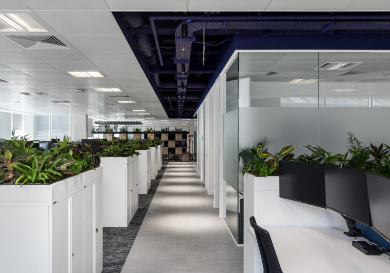 By relocating all meeting rooms to the core of the building, the desk areas where the programmers spend the majority of their time now have access to more natural light, creating a healthier work environment. With 80% more planting, biophilic elements now feature in almost every area of the office and include an air-purifying moss wall that breathes life into the space.