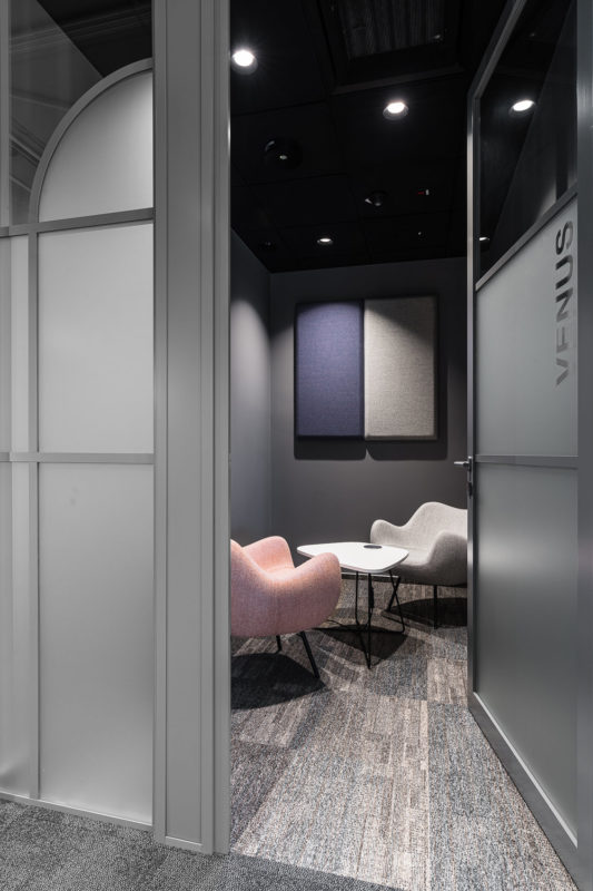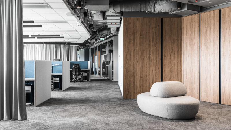 The client approved The Design Group’s design brief nearly immediately. Although their aim was to maintain the interior style in the Scandinavian beat, they agreed to the solutions put forward by the Warsaw design office, even though they break this tide. As a result, the office has earned a lot of distinctive features that, importantly, preserve the style reminiscent of the specifics of Visma’s work and visual identity.