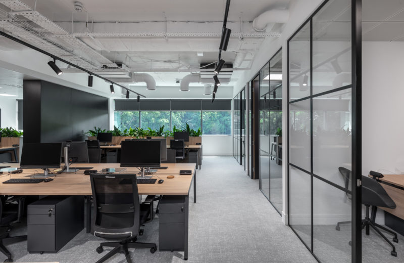 We held workshops with our client’s design team to better understand their work processes and the spaces needed to test their products. A unique desk solution was one of the outputs of this process; bespoke modular units featuring desks either side of central planting that acts as a soft screen and aids employee wellbeing. We also introduced power outlets that are compatible with electrical products from the UK, US, and Europe.