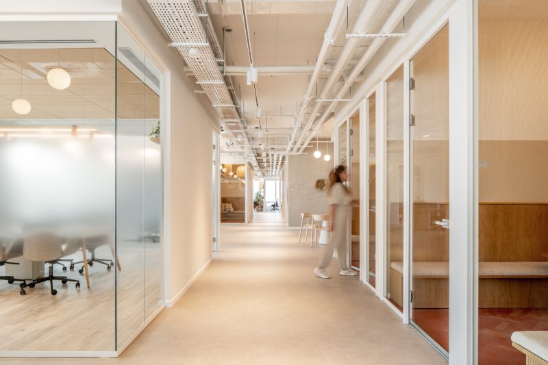 We balanced the various textures, colors and materials with a pure white ceiling that creates a blank canvas.The office space has been designed to improve user wellbeing. Quality lighting design, acoustics and ergonomic furniture, all contribute to a healthy work environment.