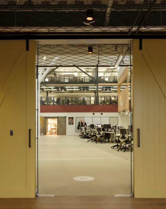 The working areas have been arranged in neighbourhoods with the facilities and appropriate technology to support agile working and collaboration. The lay-out provides local collaborative, activity-based work settings as well as communal areas (cafe, town hall, indoor and outdoor spaces), to give staff freedom of choice in their working day. The campus also has mock shops and significant on-site storage.Edge designed the new building to maximise natural light and take advantage of views to the adjacent fields and with a central atrium to serve as the communal space at sits the heart of the new campus. Enclosed and fully conditioned, the atrium provides the feeling of being in the yard of a farmstead, enclosed and protected by the surrounding barns and other buildings. At its centre is a structural ‘tree’ supporting the roof.