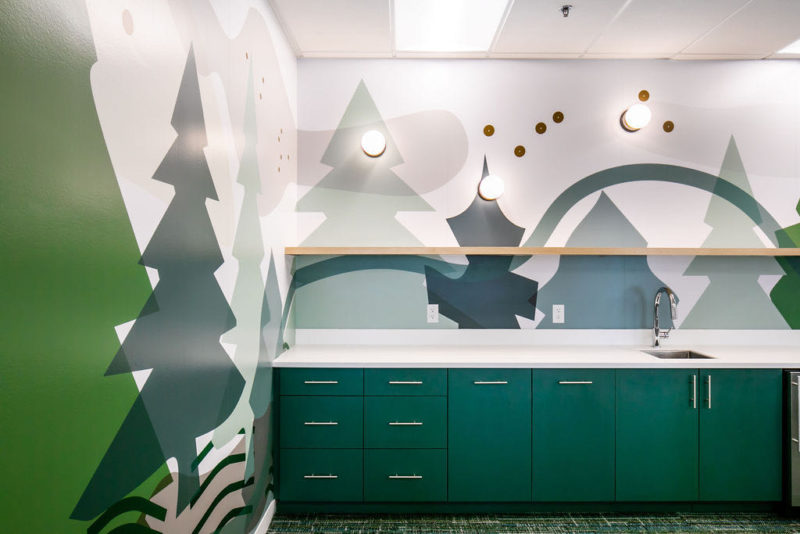 The design team created custom artwork to tell the story of Harriet’s journal through the woods and landscape to escape her bondage. These patterns, images and colors are bold yet soothing. They are meant to make a strong connection to the staff and visitors reinforcing the message of hope and optimism in the work they are doing.