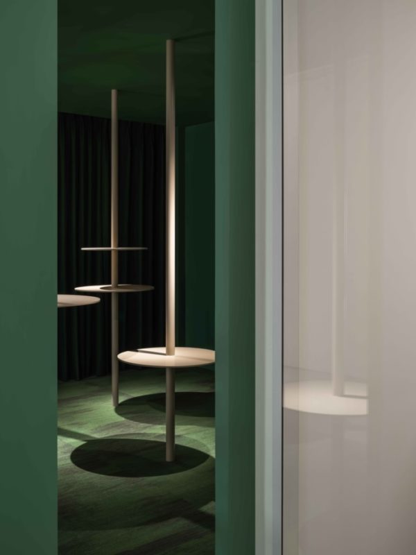 HONGDesignworks uses land art, an artistic concept that people use nature as a medium to create an art form full of overall scenes. The green color in the space, the rough-textured ceiling, and the ripple-like pattern on the carpet are all the essence of expressions of earth art.