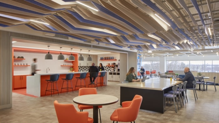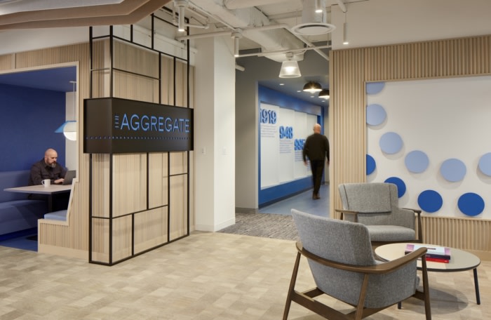 The dynamic new 34,000-square-foot workplace provides optimum flexibility of personal work styles with varying degrees of privacy. The Aggregate Café is a generous and centrally located multi-purpose collaboration and social hub, with dedicated conferencing areas providing state-of-the-art technology options.