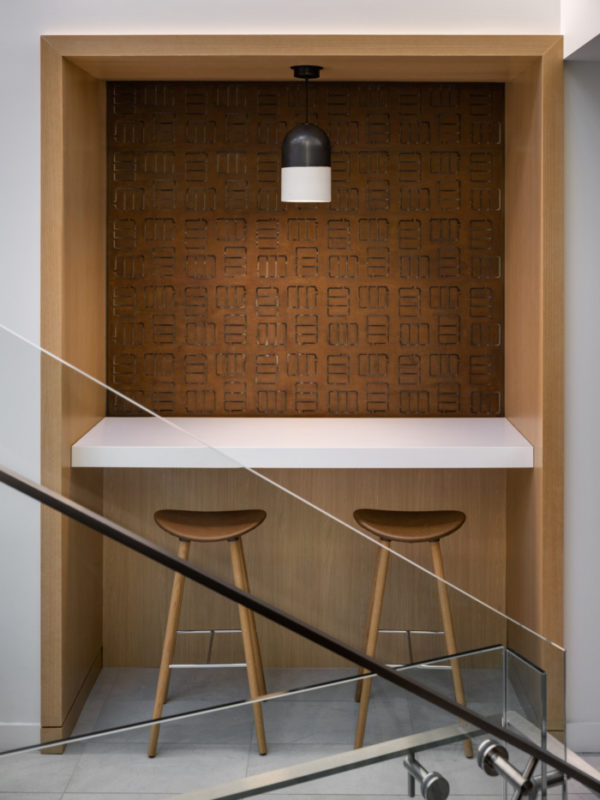 The design of the API headquarters draws on the findings of a workplace strategy exercise that engaged the staff at large to align the physical space with human, operational, and technological objectives. The resulting program shifts staff from a primarily enclosed environment to one comprised of 55% bench seating. While reducing rentable square footage by 16%, the design increases density by nearly 35%. The heart of the new headquarters, however, lies in design gestures such as natural stone and artfully crafted wood and venetian plaster accents that celebrate natural resources and a commitment to staff wellness. Lastly, a centrally located pantry, complete with biophilic elements, nurtures the cross-departmental exchange of knowledge by serving as an organization-wide gathering space.