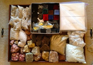 The raw materials are powdered and then mixed together with a binder to form a paste, which, for direct burning incense, is then cut and dried into pellets. Incense of the Athonite Orthodox Christian tradition is made by powdering frankincense or fir resin, mixing it with essential oils. Floral fragrances are the most common, but citrus such as lemon is not uncommon. The incense mixture is then rolled out into a slab approximately 1 cm thick and left until the slab has firmed. It is then cut into small cubes, coated with clay powder to prevent adhesion, and allowed to fully harden and dry. In Greece this rolled incense resin is called ‘Moskolibano’, and generally comes in either a pink or green colour denoting the fragrance, with pink being rose and green being jasmine.