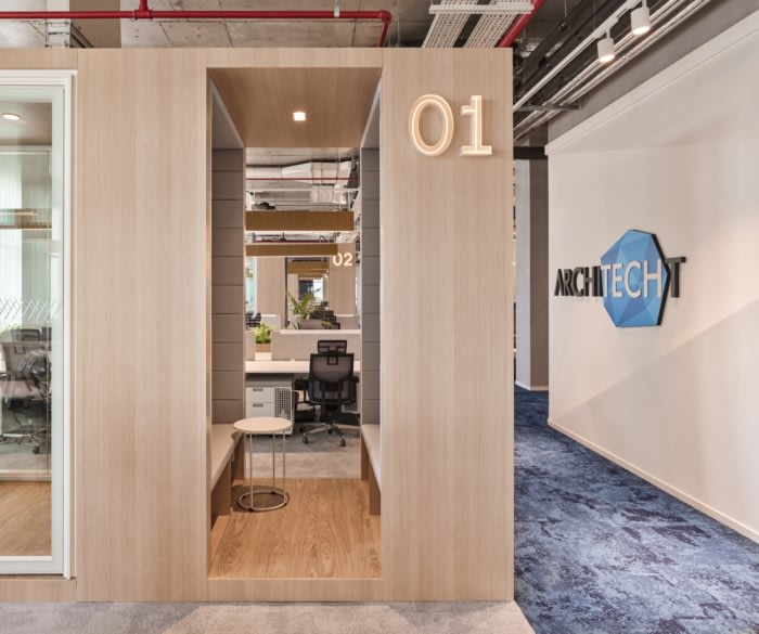For the Architecht HQ office, being able to reflect the Architecht identity was one of our important goals. Since it is a technology and software company, coding language stands out as a design element in every corner of the office, starting from the entrance/elevator areas.