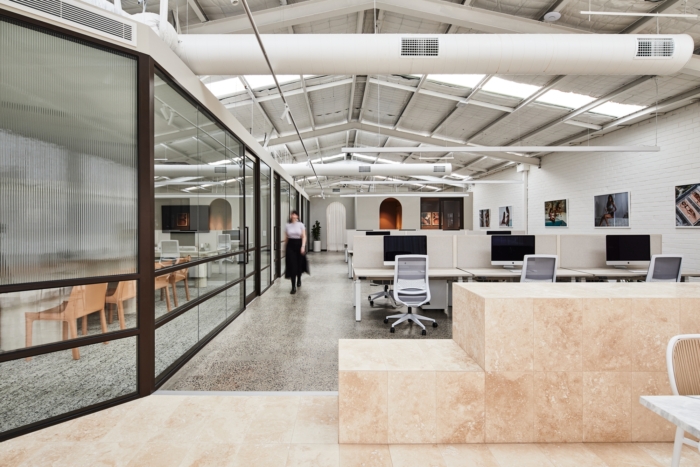 Behind a tired industrial warehouse facade in Melbourne’s south-east, interior and architecture studio Made For has created a glowing hew head office and content production studio for Australian beauty brand Bali Body.