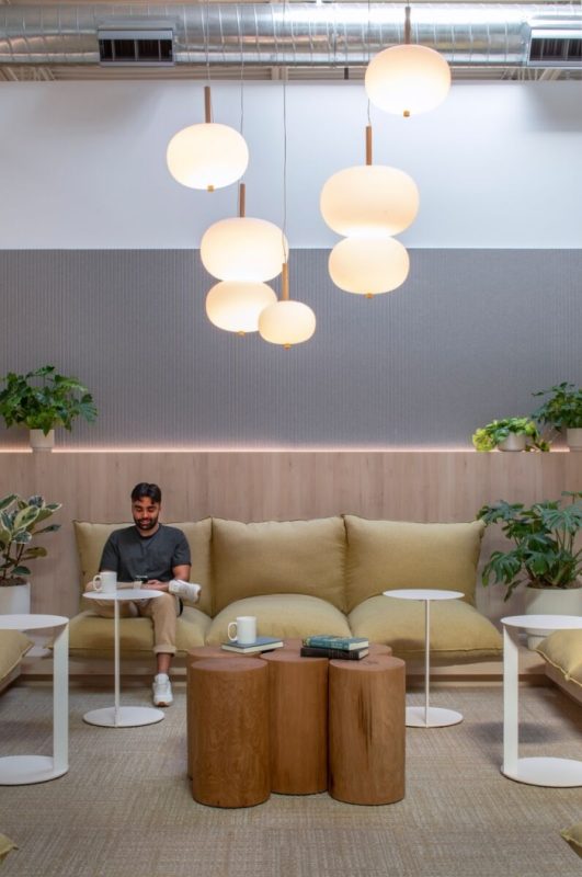 Belkin serves as a compelling case study on how to create a flexible open work environment that remains timeless while responding to current conditions. “The Grove” aspect of the project is deliberately curated to provide employees with a reprieve through connection to the outdoors. The thoughtful biophilic elements of the space further encourage employees to gather, facilitating collaboration across teams. Located in the heart of the lab space, “The Grove” is constructed around a large skylight, providing a sunlit, varied environment for employees. The redesigned office also offers a variety of meeting and work spaces to bring employees together, including a conversation pit located off The Circuit. The assortment of settings encourages a dynamic, collaborative, and exciting environment for creativity and efficiency to thrive.