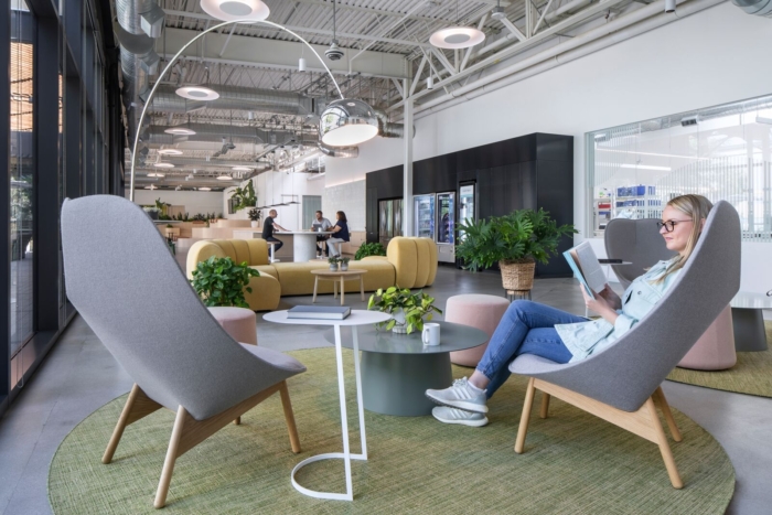 The new global headquarters is located in 555 Aviation, a former Xerox campus repositioned into a creative office, where HLW also led the 555 Aviation project previously. The renovation of the expansive single-level, 265,000-square-foot office and manufacturing building retained the architectural integrity of the original design and focused on two elements: flexibility and access to the outdoors. Belkin’s space further accentuates the architectural style of 555 Aviation.