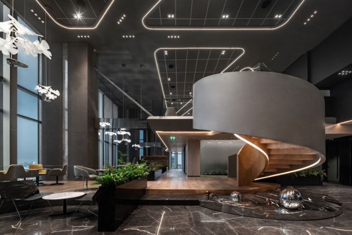 From a family business, the company is unique in a certain way. Therefore, the design has accompanied the warm, cozy, residential touch. There are several reception areas, the 22- seat dining room for the family, the 40-seat executive meeting room, and the top executive offices. All these have leveraged the place to be much more than an office.