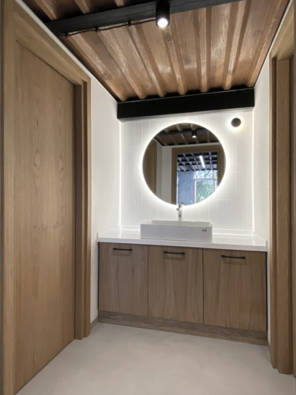 The concept of the design is its overall simplicity, use of principal elements and materials and the attention to detail. All of the steelwork and woodwork, as well as the glass partitions and mirrors have been carefully crafted by our local bespoke fabricators. The circular backlit mirrors are an artistic interpretation of the BURO logo. From the very early design stages, we have been working closely with the clients and the whole editors team at BURO – the end users – to achieve an informed and empathic design.