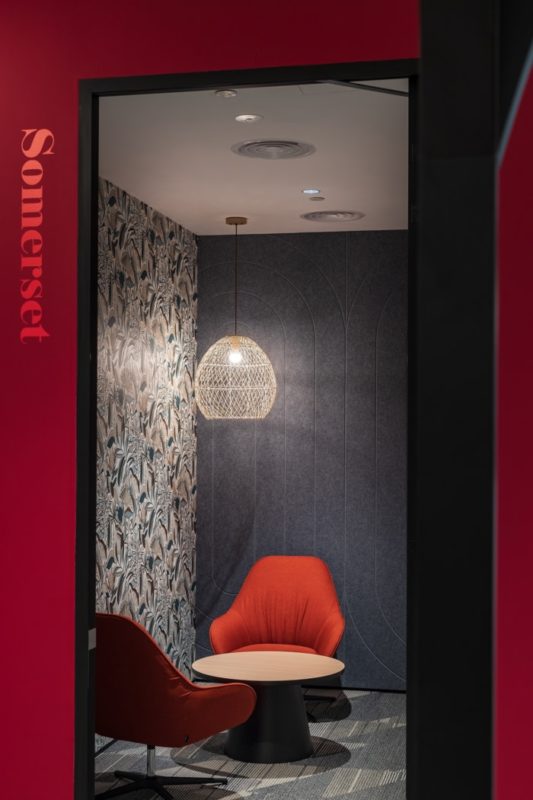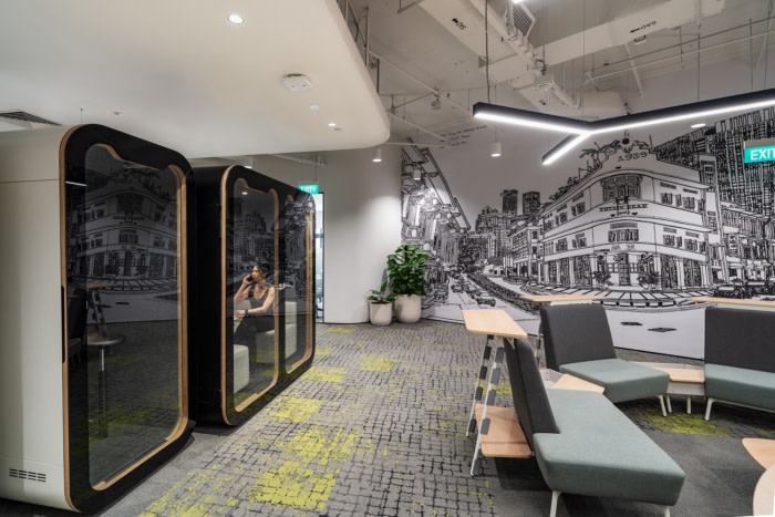 Aesthetic details that pay tribute to Singapore’s heritage and culture can be found throughout the space such as Peranakan-style tiles, stools, as well as meeting rooms that are named after different MRT stations.
