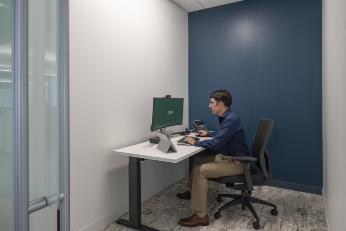 CBRE is lean, mobile, and forward-focused, requiring the ability to quickly respond to a variety of business parameters that are in constant fluctuation. Collaboration is an important part of their daily work. Teams needed the ability to come together quickly and share information in both formal and informal settings while also maintaining focus work. Therefore, the overall work environment design open with a “universal” approach to planning that supports both internal and external needs. Yet, each department can have their individual activities and maintain their confidential requirements.