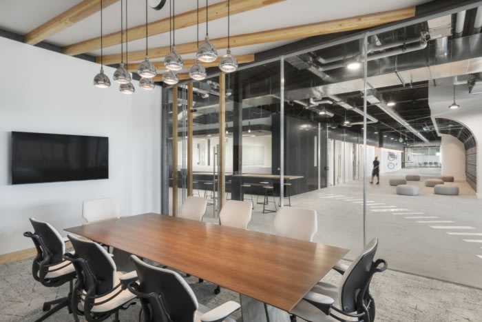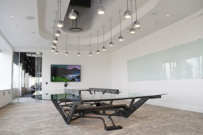 Starting with an open plan typical of many high-tech companies, the direction quickly shifted to an approach influenced by space connectivity, efficiency, and most importantly- fluidity. The flow and atmosphere needed to embody the mindset and culture of the company. “We’re a diverse combination of geeky coders– but we like to get oil under our fingernails and marvel at a ‘67 Corvette Stingray”. Simple materials that harken back to automotive beginnings and give way to automotive future.