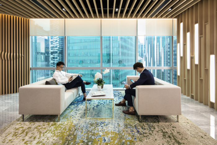 Apart from timber, marble was another heavily featured element throughout the office. The bold use of wood and marble materials helps to promote a balance in the workplace – similar to yin and yang.