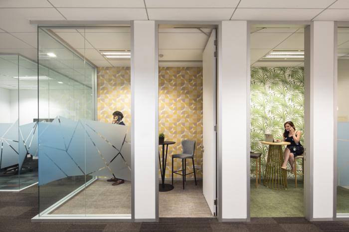 To break up the open workspaces, manager offices, phone booths and meeting rooms were scattered in between clusters of workstations. This also helps to divide each department into zones.