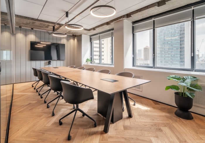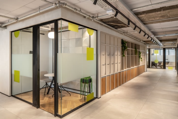 Each area has its style, such as a feature ceiling element or beige flooring, which makes each space feel more intimate and allows employees to be happy and satisfied at work.