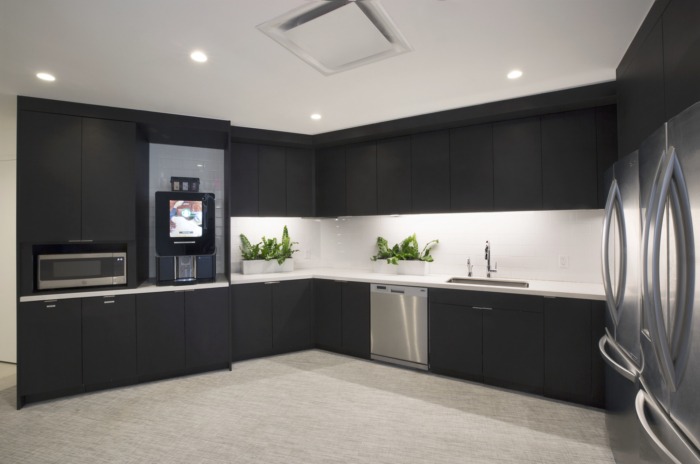 Heads-down areas are supplemented by standing-height tables with large-format storage solutions integrated throughout the workfloor. These areas help to alleviate clutter and provide a centralized point for teams to quickly huddle to review drawings or host impromptu gatherings to discuss the status of a project. Conference rooms in varying sizes are strategically scattered throughout the floorplate, offering enclosed alternatives for collaboration, spontaneous meetings, or professional development. Even the centrally located food service HUB is designed to bring the team together through a spacious design that allows for all-hands discussions or extracurricular programming such as yoga classes. The resulting balance between dedicated workspaces and breakout areas supports CNY’s interpersonal culture and enterprising spirit, while accommodating a unique team structure and allowing for efficient workflow and growth across all departments.