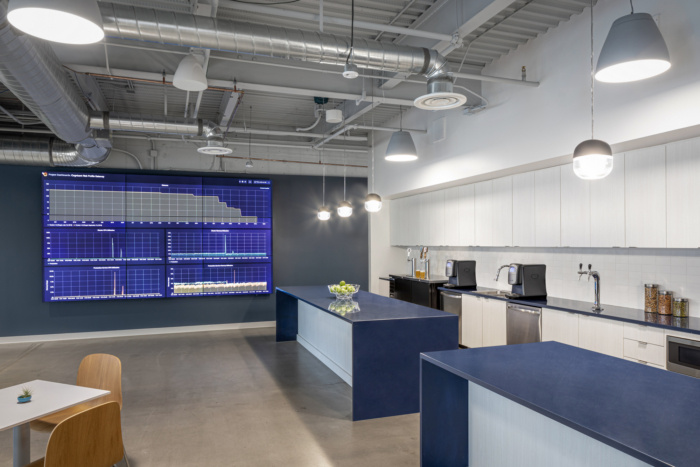 The custom reception desk is made of beetle kill pine, a locally sourced wood, native to the Boulder area. Highly graphic wall coverings inspired by cycling locations around the globe are featured in the huddle rooms. The ability to gather together as one company, both locally and globally, was key to the design of the space. The break room is large enough to accommodate all employees and features a multi-paneled screen for global all-hands meetings. A collection of bicycle racks were incorporated into the design to accommodate the active Boulder lifestyle.