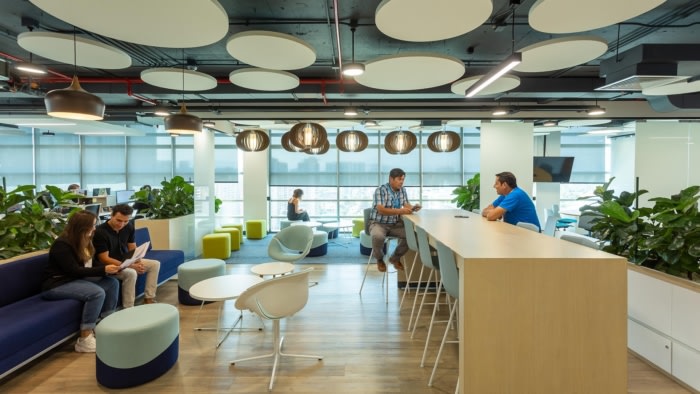 In the center of the plant, the collaborative areas (Brainstorming, Informal Meetings and Meeting Box spaces) were located together with the operational area, so that different instances of interaction between collaborators could be generated, be they formal or informal. In order to reinforce the integration of the team, the same type of furniture was defined for all members of the campus. The Work Coffee was also located in the central area, underpinning the intention of strengthening ties and meeting opportunities for teams.
