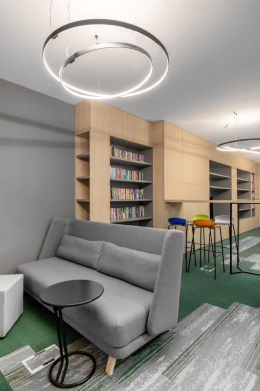 Informal relaxing areas for reading, playing and socializing were well-balanced inside the office so anyone could join one au naturel.