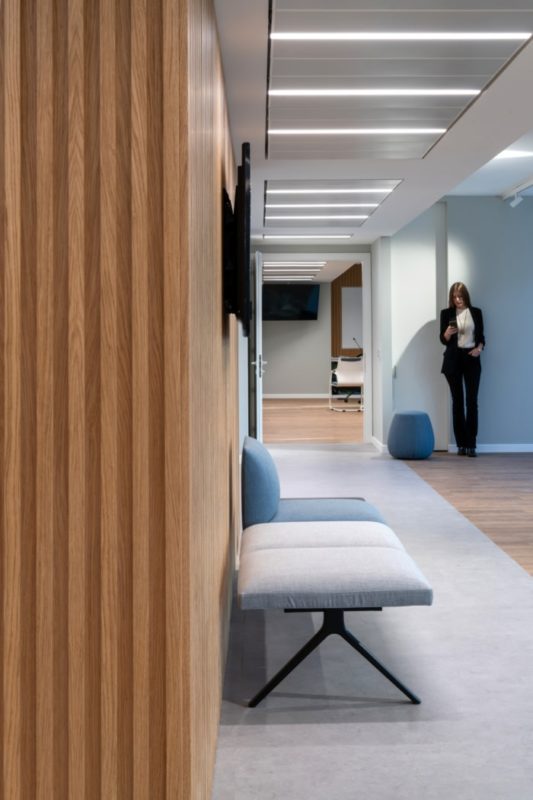 Pleasantly diversified spaces, high flexibility, functionality and extreme attention to detail make the design of this Training Center a unique space in terms of well-being of its workers.