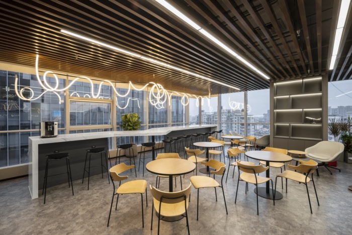 The design of this office was inspired by the shape of the mountain and the spatial characteristics of the financial industry. The texture and shape of the mountain endow the office space with a peaceful, luxurious, and noble atmosphere. The financial K-line charts are scattered in space, not only expressing a beautiful vision for the future but also echoing the image of mountains. The combination of dynamic and static in the entire space fully demonstrates the enterprise spirit and investment philosophy of “open collaboration and mutual empowerment” in the project space.