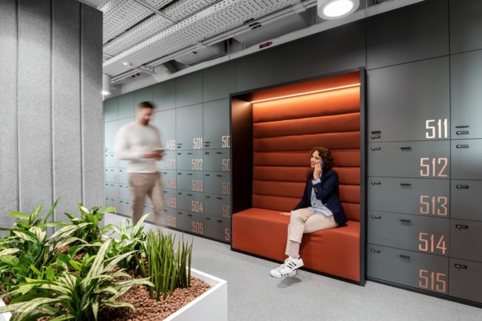 Semi-enclosed huddle zones allow for varied furniture selection and flexibility, too provide different seating choices for each type of space, to create diversity within the floor and encourage mobility.