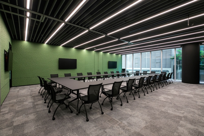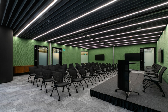 With versatility a preferred commodity, the conference room has been designed to suit different configurations perfect for small gatherings to townhalls or even as multiple meeting spaces. While the conference space sports dark tones, the individual rooms come in shades of white to give an illusion of spaciousness and to exude calm. Overall, this space is youthful, energetic and bold.