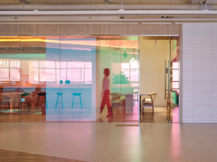 The co-working space on the 1st and 2nd floor is open to residents and registered members only. The 1st floor offers various types of work setting including long communal table, booth seating, counter seating by window, and individual table sets. There are also different size meeting rooms fully equipped with AV system. The members also can rent a space with movable tables which can be configured per different purpose on 2nd floor. 8-10 person small office with workstations is also available for rental with different terms.