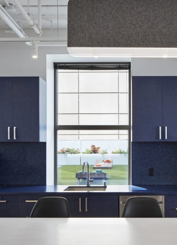 The cafe space becomes a focal point with great amenities and a connection to the roof top deck. This deck feature will be the heart of the office supporting work and play for the Damon Farber team and their clients.