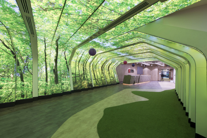 Designed to spur innovation, the concept leverages outdoor experiences that are weaved seamlessly into the design, to create a sensorial office experience for staff, who are often deskbound and spend most of their working hours using their screens. The aesthetics of the workspace spur innovation by looking less like a traditional bank and more like a futuristic big tech company; yet the space also embraces DBS’ brand and culture in its design.
